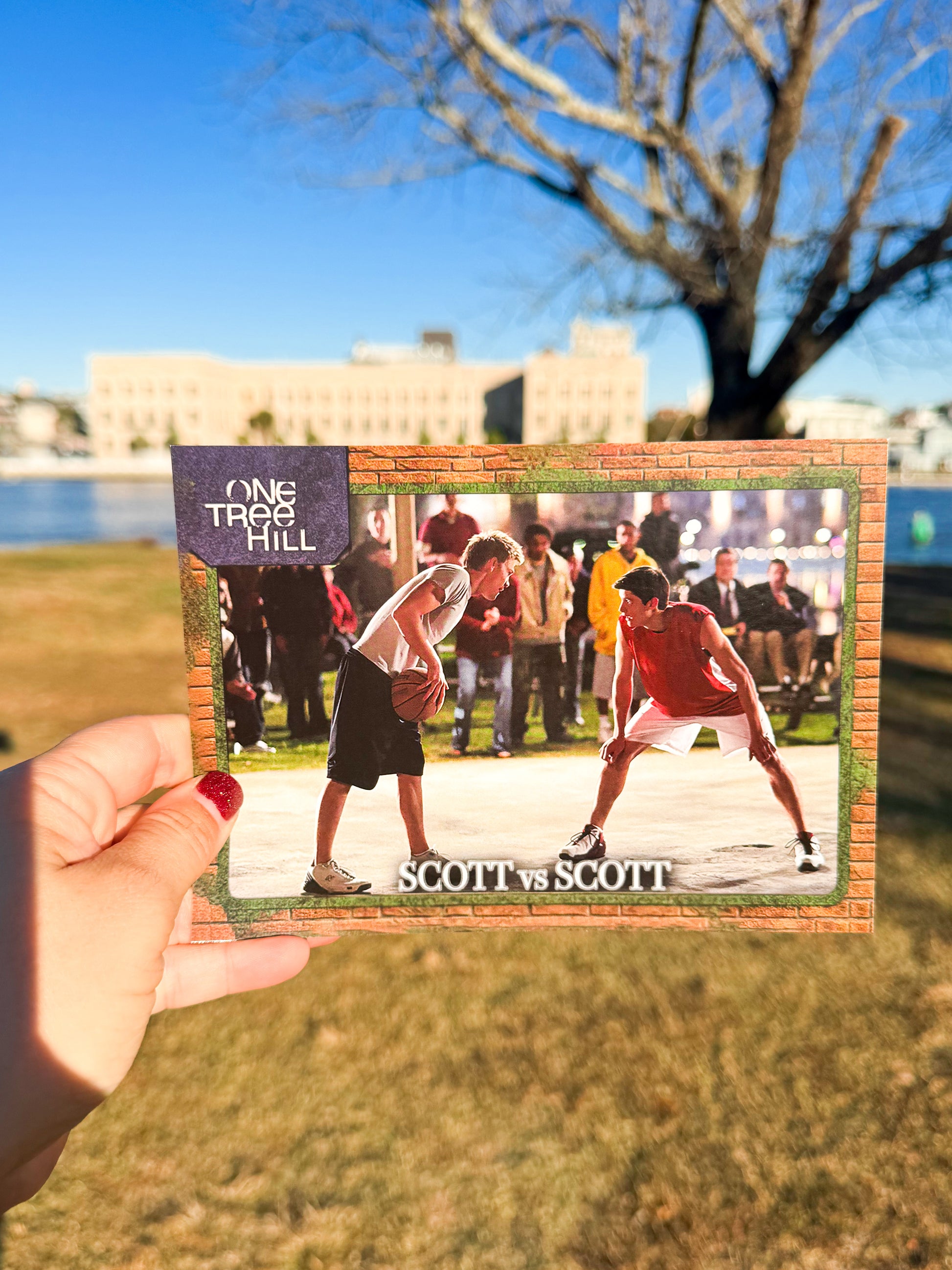 A commemoration of the first ever one on one game of Lucas Scott vs. Nathan Scott on the Rivercourt! Grab this 5x7 trading card perfect for both Scott Brothers to sign and frame for your Tree Hill Collection!